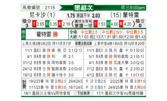 赛前数据