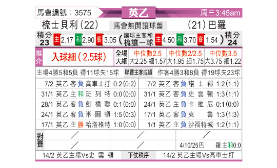 赛前数据