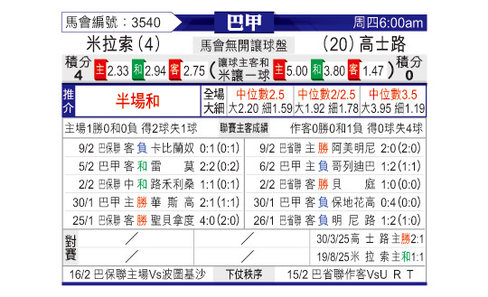 赛前数据