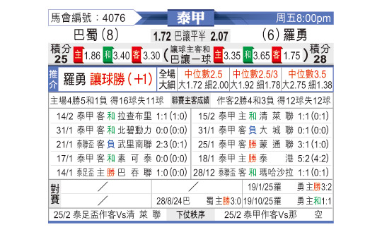 赛前数据