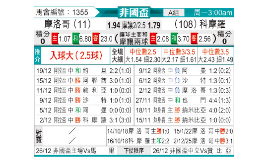 赛前数据